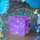 Bakgrund till lila folie med stjärnor presentaskar