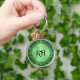 Bakgrund till svart Blommigt Circle Metallic Grönt Rund Silverfärgad Nyckelring