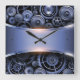 Bakgrundsbagagetagg för metallblått struktur fyrkantig klocka