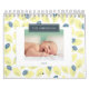 Den här söta och moderna kalendern visar ditt foto med bakgrunden säsong mönster för varje månad från citroner, polka dots, blommigtar, bunnier, polar björnar och så vidare. Anpassa den efter dina behov.