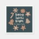 Festiv och visuell jultoma napkin för din julfest med hand plockade som illustration av helgdag-cookies. I texten står det "backa sprit briljant".