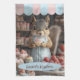 En charmerande bild har en snygg ekorre med en strimlad platta som håller en rosa friterad cupkaka. Dekren står bakom ett bord lastat med en mängd vackert dekorerade muffinsar, makaroner och jordgubbar, mot bakgrunden av ett quaint bakeri med rosa och blåvinning. Den här härliga scenen fångar stollig i en begåvad ekorrebakare i en söt och inbjudande miljö.