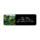 Bakpackningsflicka som letar upp spåret returadress etikett
