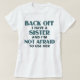 Baksida av har jag en inte rädda syster och I-förmiddagen som använder henne. Grafiskt textordstäv i djärvt blåtttypsnitt. Underbart, om du har en storasyster eller lite en syster som inte är rädd att dra tillbaka upp dig och att ta din sida.