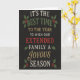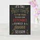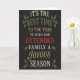 Elegant baksida av ett julhälsningskort, svart bakgrund, centrerat gyllene och vitt festtextmeddelande, omgivet av grönt holly löv med röda bär i hörnen, ren och minimal utformning, samma stil och typografi som framsidan, högkvalitativ och balanserad utformning.