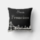 Skräddarsy ditt kontor, eller uppehälleutrymme med denna roliga San Francisco horisontdekorativ kudde som presenterar en vit, kudder med den svart silhouetten på beklädasidan och inverterad färgläggning på den omvända sidan.