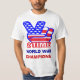 Väljer färgar obestridd baksida för två Time som drar tillbaka skjortan för världskrigmästareutslagsplatsen som presenterar en räckavisning 2 fingrar och ord 2 tidvärldskrigmästare, något stilformat och för dina egna manar, kvinnor, barn och även bebis för vädjan!