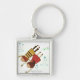 Baksidaen beskådar av en koppla ihop som fyrkantig silverfärgad nyckelring