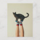 Balanserande katt på strimlade socklar, katttäcke vykort