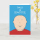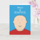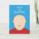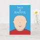 En tecknad av en leende man utan hår, åtföljd av orden "Bald är vacker".