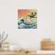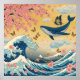 Uma ilustração vibrante que mistura elementos tradicionais japoneses com fantasia: uma majestosa baleia azul flutua pelo céu dourado, rodeada por borboletas, pétalas de sakura e ondas inspiradas em Hokusai. A composição cria um cenário onírico, poético e cheio de movimento — perfeito para quem ama arte japonesa, natureza e surrealismo.
