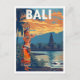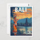 Capture the spirit of the Island of the Gods with this captivating vintage-style travel poster postcard for Bali, Indonesia. The design showcases the island's iconic elements: a graceful figure in traditional Balinese dance costume with a striking headdress, a serene temple (Pura) in the background, and lush tropical scenery under a dramatic sunset sky. The rich, earthy color palette—featuring deep oranges, blues, and jungle greens—evokes a sense of exotic adventure and tranquility. This postcard is a perfect memento for travel enthusiasts, collectors of retro destination art, or anyone who loves Balinese culture and mythology.