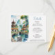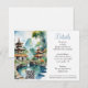 Färdigställ din bröllopsbrevpapperssvit med detta vackert designade detaljerkort inspirerat av ett destinationbröllop i Bali, Indonesien. Med en lugn akvarellillustration av tempeltak, frodig grönska och en fridfull trädgårdsdamm med en graciös bro, speglar designen den lugna skönheten i en asiatisk trädgårdsidyll.
