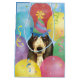 Grattis på födelsedagen hälsning med den här söta designen med en snygg, party hattklädd Basset Hound-valp omgiven av färgstarka ballonger, konfekt och strömbrytare.