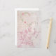 Hand plockade ballerina klädd i rosa tutu en pointe med arm uppåt utsträckt. Två botaniska ämnen, den ena formade till ett hjärta överst, och den andra är rosa eukalyptus med vattenfärgbakgrund. Vit klädd och styrd papper för skrivning.