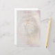 Ballerinas dansar på vit tutu. Ljus rosa vattenfärgsabstrakt bakom ballerina. Vit klädd och styrd papper för skrivning.