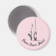 Välj en egen bakgrund färg och text på den här dans-temade magneten. Här i blekens rosa är det en ballerinas fötter i bjälkskor när hon dansar på sina tår. Sloganen säger "Dance, dans, dans!" men kan lätt vara personlig med namn eller ett varumärke. En roligt, modern grafik för en dansare eller balletoman, med klassgraverad verkan.