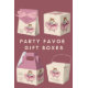 Få redot att dansa på din lilla ballerinas födelsedagsfest! Våra favoritboxar är perfektens sätt att tacka gästerna för att de gått med firande. En beundransvärd hamster som bär en rosa tutu. Det finns gott om utrymme att anpassa dig med din födelsedag namn och speciella datum! Blanda och matcha med våra andra roligt party-produkter från Mitt Baby Boutique!