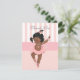 Ballerina i rosa tutu med vattenfärgad blomma, snöre, rosa och vit rand bakgrund.