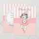 Ballerina i rosa tutu med vattenfärgad blomma, snöre, rosa och vit rand bakgrund.