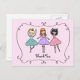 En trio ballerinas twirl och dans. Anpassa de här vykorten för att säga tack efter en födelsedagsfest, de är underbara för att de ger ut till gästerna. Dessa vykort kan också vara personlig som en billig inbjudan.
