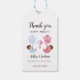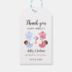 Lägg till en touch av himmelshög sötma till ditt köns avslöjande fest med denna bedårande tack etikett! Med en babyflicka i rosa och en babypojke i blått, båda insvepta i filtar och svävande med färgglada ballonger, är denna design perfekt för köns-avslöjande fester. Fullt anpassningsbar text gör det enkelt att matcha din feststil.