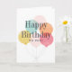 En födelsedagsdesign av Stacey Meacham med handritad ballonggrafik och Glad födelsedag-meddelande på framsidan. Insidan har ett anpassningsbart meddelande som du kan redigera för att passa dina behov. All text på både framsida och insida kan anpassas för att göra detta kort perfekt för vem som helst.