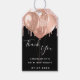 En svart bakgrund på chicen framtill. Med faux ro guld glitter droppar och ballonger som dekoration. På framsidan finns ett handskript i stil och texten: Tack. Anpassa och lägg till namn/text och datum. Tillbaka: Bakgrund och plats för guld för skriva för hand.