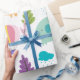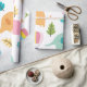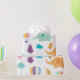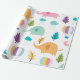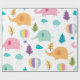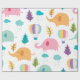 Färgfulla elefanter med tecknad, luftballonger och stiliserade träd, sömlösa mönster.