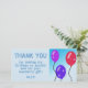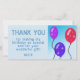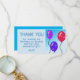 Ballonger Barn Födelsedags Tacksamhetskort. Tack födelsedagskort för barns födelsedagsfest. Denna design kommer med ballonger i röda, blå och lila färger på en blå bakgrund. Tacka din familj och vänner. Anpassa kortet med ditt namn och tacksamhetsmeddelande.