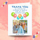 Ballonger Barn Födelsedagsfoto Tackkort. Tack ballong födelsedagskort för barnens födelsedagsfest. Denna design kommer med ballonger i röda, blå, rosa och gröna färger. Personifiera kortet med ditt barns namn, tackmeddelande och foto.