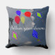 Reversibel familjenamnsprydnad kudde. Framsidan på kudden har texten Följ dina drömmar med vacker blå himmel och jättelika fluffiga vita moln, färgglade ballonger och drakar flygande på himlen med noter och halvmånar dekorerade på drakarna högt ovanför träden. BAKSIDA på 20" x 20" kudde är enfärgat blå med texten "Bevara söta barndomsminnen". PERSONANPASSNING med ett barns eller barns förnamn, DIN familjenamn och år grundad. (Om dina namn är för långa kan du behöva klicka på Anpassa den för att minska teckenstorleken). Se min butik för denna design i 16" x 16" kudde. Originalfotografering, formgivning © 2014 TamiraZDesigns.