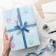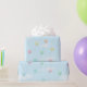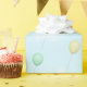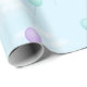 Denna glada presentpapper design har pastell färgade ballonger som flyger genom en blå himmel full av fluffiga vita moln.
