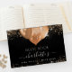 En snyggt svart bakgrund med faux guld glitter damm. Dekorerad med guldballonger. Anpassa och lägg till namn, text och datum. Namn är skrivet med ett modernt handskript i stil med dekorationer. Om du bara vill behålla utslagen tar du bort exemplet namn lämnar du blankstegen eller symbolerna framför och efter namn. Anpassa och lägg till texten på ryggraden.