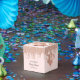 Elegant, klassisk, glamorös och giftig för en babydusch party favors. Trendig ro guld, bakgrund färg. Med texten: Baby Shower och Tack skriven med ett modernt handskript i stil. Dekoreras med ro faux glitter, färgdroppstift och ballonger. Anpassa och lägg till ett namn och ett datum.