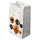 Happy halloween illustration med party-ballonger i svart och orange med ett spöke, en häxa, en spindel och spindelnät och jack-o-lantern på vit bakgrund.