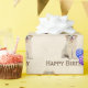 Grattis på födelsedagen golden hämmare med svartrimmade glasögon på mjuk beläggning med polka-punktballong bouquet.
