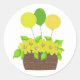 En söt som har en fullt basket i gula blommor med tre ballonger med gult och grönt monterad.