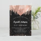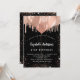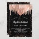 En svart bakgrund. Dekorerad med ro guld, faux glitter-droppar, färgdroppstift och ballonger. Anpassa och lägg till uppgifter om namn, ålder 21 och party. Namn är skrivet med ett handskript i stil
