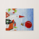 Ballonmus och Tak Puzzle med Mouse flytande i sin luftballong ovanför en stads tak.