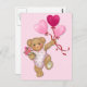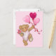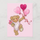 Cute Teddybjörn med rosa hjärtballonger i handen. Ribbon-spår från ballonger och en rosa ros-bukett hålls i hennes andra hand. Söt design för speciella dam eller flicka på Alla hjärtans dag eller när som helst.