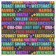 Den här färgfulla helomvändningen av mönster har namnen på många av de stora stilarna för balrumsdans, som har ett fetstilt typografiskt typsnitt i en mängd olika ljusa färger. Interspersoner mellan ord är olika stora punkter som accentuerar utformningen. Danserna är foxtrot, tango, cha cha, rumba, samba, öster och väster, merengue, bachata, hustle, snabbsteg, lindy skutt, waltz, paso doble, två step, bolero, mambo och jive. Den här bilden är designad med en genomskinlig bakgrund som gör att du enkelt kan ändra bakgrunden till färg genom att välja att anpassa den ytterligare. Vibrant och glad!