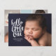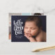 Modern födelseanmälan med ett foto på framsidan och fyra på baksidan, åtföljt av ett elegant vitt kalligrafiskt skript. Alla färg kan anpassas. Det kan vara personlig med ert eget budskap och baby statistik.