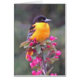 Baltimore Oriole-fågel är perchad högst upp på Adam's Crabapple träd. Wildlife, blommigtens image fångad i New Hampshire.