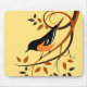 Stiliserad fågelkonst på musmattor med Baltimore Oriole på virvlande mönstergrenar och dekorativa blad.