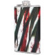 Foto av abstrakt, med brett, slumpmässigt rand, sammanflätat i, Fet färg av, svart, röd, mörk-grönt, oliv- och vitliknande, bambu-stjälkar.