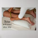 Unga människor som får en bambomasage på ryggen av benet med en vit handduk över sina våtmarker.Denna poster fungerar underbart för massageterapeuter och för dem som arbetar inom spa- och skönhetsindustrin.
