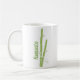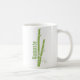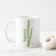 Snyggt, vit keramisk mugg med grafik av bambostjälkar av grönt. Grönt på båda sidor om mugg står Namaste. Anpassa texten så att du kan läsa vad du vill. Fantastisk presentidé för vem som helst till yoga eller meditation.