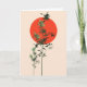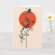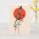Ett par grönt-bambu med löv står emot ett rött, stigning sol, på en blek eftersom en parchmentbakgrund gör ett vackert asiatiskt födelsedagskort.