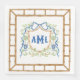 Denna chic har en Bamboo-Vapensköld med en blå båge omgiven av olivtopiarier i träd i kiniserikrukor. Det finns en bambu ram utanför kant. Du kan anpassa dig med ditt monogram.
